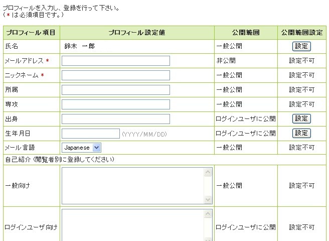 また、個人のプロフィールを書くことができますので、ぜひ記入してください。